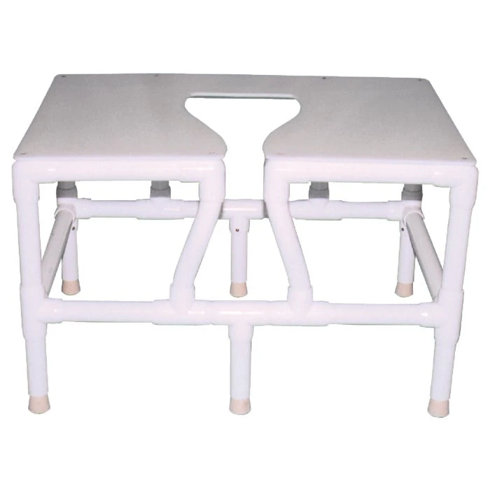 The Bariatric Shower Commode Seat is a shower bench that doubles as a commode if needed. Non-slip feet prevent the seat from moving. The high density polyethylene seat is durable and bariatric rated for use by heavy and overweight persons.