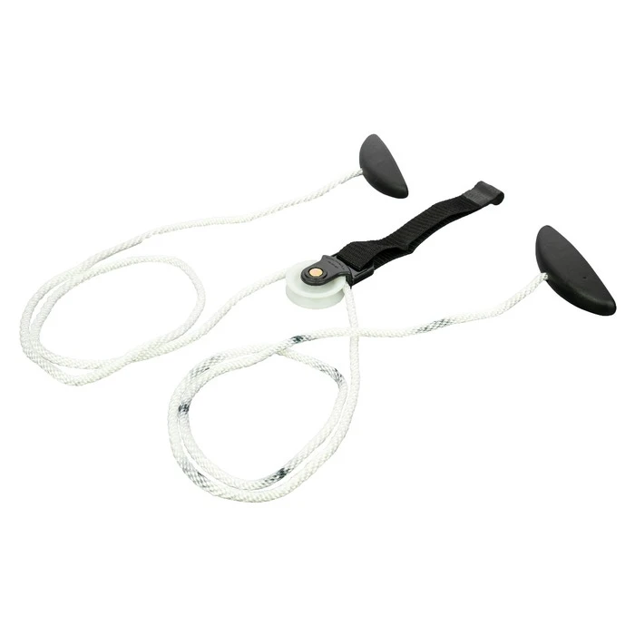 Without fraying or unraveling, the tension rope is marked at intervals so patients and therapists can gauge progress. In addition, the tip of the web strap is enlarged with a solid filling, then dipped and sealed in a rubber coating. This non-slip feature increases safety when straps are used over a door.